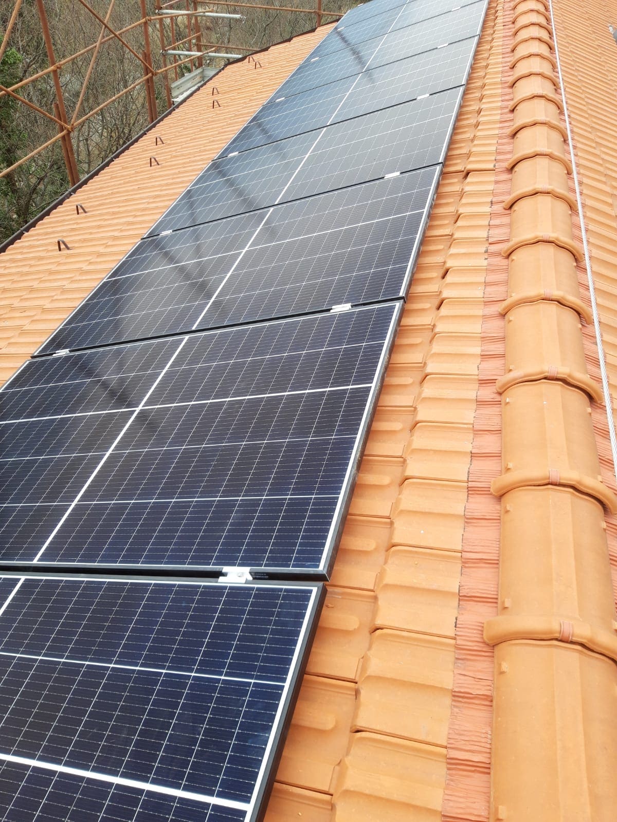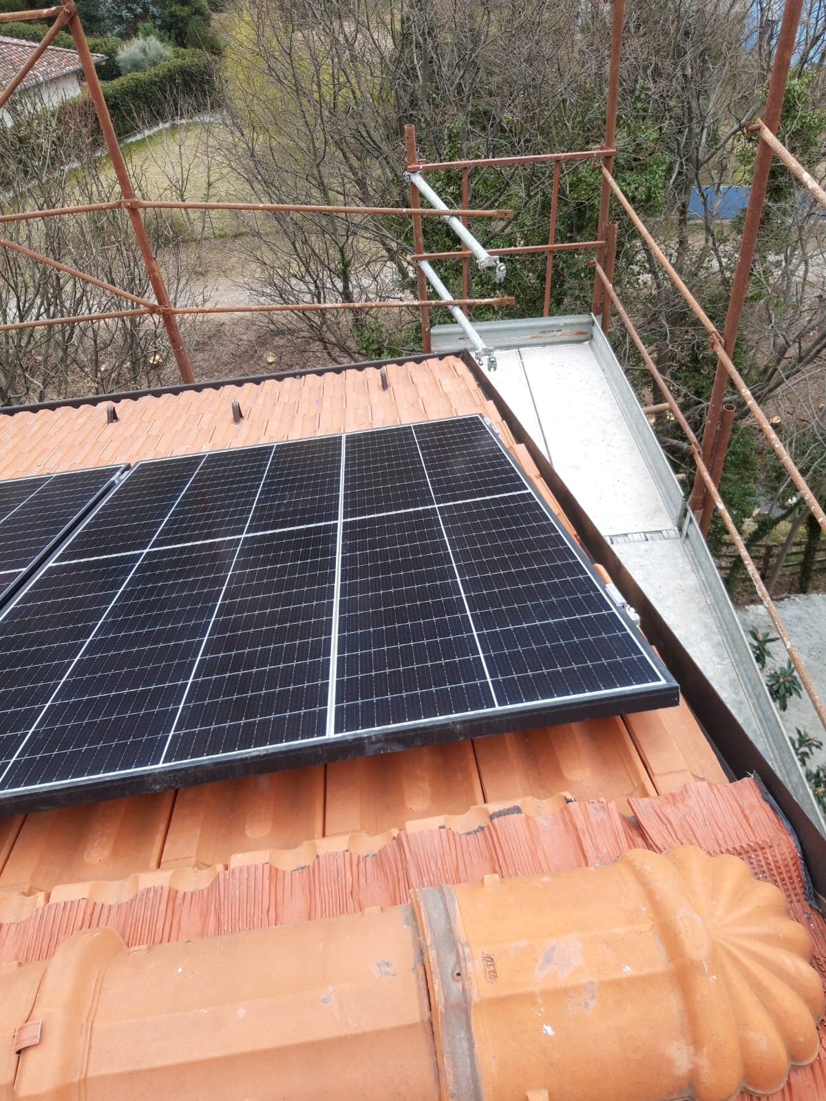 Descrizione: Impianto con moduli da 400Wp monocristallini con tecnologia PERC , ottimizzatori di potenza e sistema di accumulo con batteria al litio (LiFePO4) da 10kwh 100% DOD, sistema di gestione e monitoraggio impianto